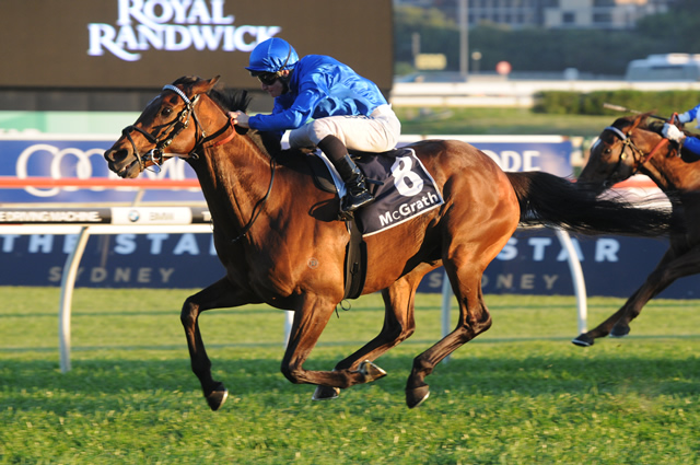 At Royal Randwick in Sydney, 6YO Irish bred gelding Magic Hurricane (Hurricane Run-Close Regards, by Danehill) landed the biggest prize of his career when scoring by 2-lengths for trainer John O'Shea in the $750,000 Gr1 Metropolitan (2400m) for 3YO+, over 8YO UK bred gelding Beaten Up (Beat Hollow-Frog, by Akarad) & fellow 6YO Irish bred gelding Havana Cooler (Hurricane Run-Unquenchable, by Kingmambo). The Godolphin-owned Magic Hurricane, who is by Montjeu's Prix de l'Arc de Triomphe-winning son Hurricane Run, took his record to 5 wins (including the Listed Premier's Cup) and 5 placings from 16 starts for $667,390 earnings. Trainer John O'Shea is hoping Magic Hurricane can join stable-mates Complacent and Hauraki in the Gr1 Caulfield Cup (2400m) in two weeks a time. "That run will have him at his top, I don't know whether that's enough to get him a penalty to get him into the race but if he gets in we'd like to run him and we'll have three nice chances in the race," O'Shea said.