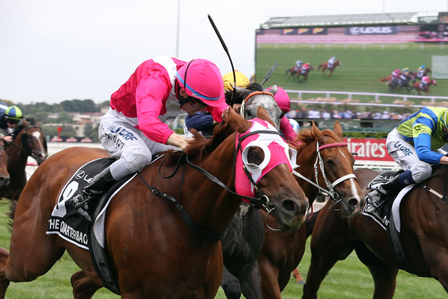 At Flemington in Melbourne, multiple US Gr1-winning sprinter & Darley shuttler Street Boss (Street Cry-Blushing Ogygian, by Ogygian) celebrated an elite success when 5YO gelding The Quarterback (Street Boss-Soorena, by Encosta de Lago) scored by 0.2-length for trainer Robbie Griffiths in the $1.25 million Gr1 Newmarket Handicap (1200m) for 3YO+, over fellow 5YO geldings Black Heart Bart (Blackfriars-Sister Theresa, by At Talaq) & Chautauqua (Encosta de Lago-Lovely Jubly, by Lion Hunter). The Quarterback took his record to 8 wins (including the Listed Dilmah Earl Grey Stakes & Listed VRC Kensington Stakes) and 7 placings (including the Gr3 Manfred Stakes & Gr3 CS Hayes Stakes) from 24 starts for $1,288,250 earnings. The Quarterback, who is a half-brother to Gr2 Tulloch Stakes winner Phillipi (Host), was purchased by Griffiths for $120,000 at the 2012 Inglis Premier Yearling Sale from the draft of Makybe Racing & Breeding. The win also represented a special milestone for Griffiths, who was celebrating his first Gr1 winner as a trainer. "It's brilliant to be put in the same echelon as other trainers. It's what we do it for - it's nice to be recognised at that level," Griffiths told Racing.com. "This year's been outstanding, we've had some really good horses and it's finally come off." He added: "To win a Group 1 anywhere would have been a dream come true, but to do it at Headquarters in the best sprint race in Australia is amazing."