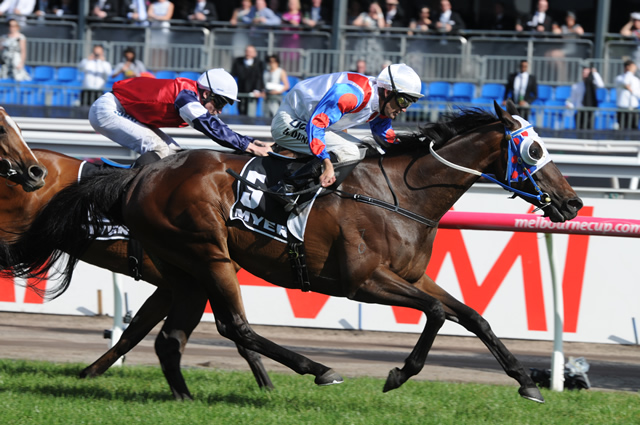 At Flemington in Melbourne, Darley's 2006 Champion 2YO Colt & 2007 Gr1 Kentucky Derby-winning shuttler Street Sense (Street Cry-Bedazzle, by Dixieland Band) celebrated an elite Gr1 success when 5YO mare Politeness (Street Sense-Berengaria, by Commands) scored by 0.75-length for trainer Robert Smerdon in the $500,000 Gr1 Myer Classic (1600m) for 3YO+ f&m, over 4YO mares Fenway (High Chaparral-Deedra, by Zabeel) & Azkadellia (Shinko King-Raving, by Centaine). Politeness, who was a $115,000 purchase by Malua and Bahen Bloodstock at the 2012 Inglis Australian Easter Yearling Sale from the draft of Sledmere Stud, boosted her value considerably with this well-deserved maiden Gr1 victory. Owned by Phil Sly and Japan's Katsumi Yoshida, she took her record to 7 wins (including the Gr3 William Hill Sprint Series Final, Gr3 Summoned Stakes, Gr3 PJ Bell Stakes & Listed Bel Esprit Stakes) and 4 placings (including the Gr2 Thousand Guineas Prelude & Listed Lexus Hybrid Plate) from 26 starts for $903,800 earnings. "We made this her ultimate aim, because she's won about five Group 3 races now and the only way her long-term value could increase was to win at Group 1 level," said winning trainer Robert Smerdon. The win provided a timely tonic for owner Phil Sly who has been fighting a public battle with cancer. "It keeps me alive mate, keeps me alive," Sly said. "I don't know where she goes now or what happens but she'll form part of the breeding thing over in Japan with me and Katsumi. He'll be ecstatic."